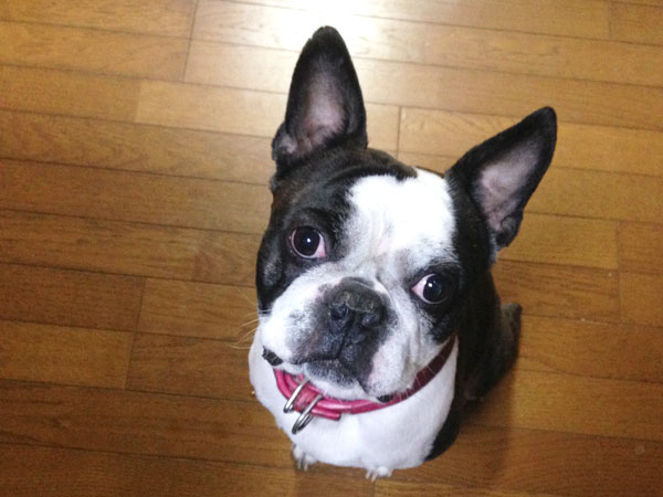ちょっと大きめ、ボストンテリアのアレクくん。元気にお留守番してくれました。おさんぽも元気元気。でも、坂道はちょっと苦手な …