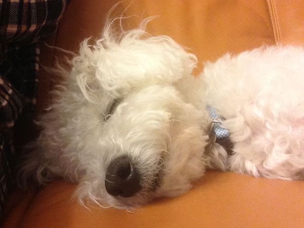 ビション・フリーゼのテールくん。はしゃぎ疲れて、この寝顔。天使だ…