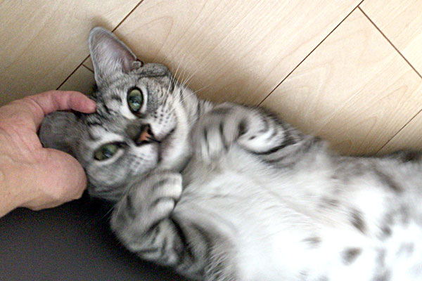 こねくり回すように頭を擦り付け、ゴロンゴロンの回転レシーブフミフミ。
